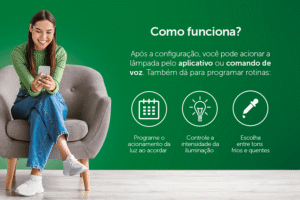 Com 16 milhões de cores e opções ajustáveis entre branco quente e branco frio, você pode criar a iluminação ideal para qualquer ambiente ou ocasião. Torne sua casa mais conectada e personalizada com facilidade.